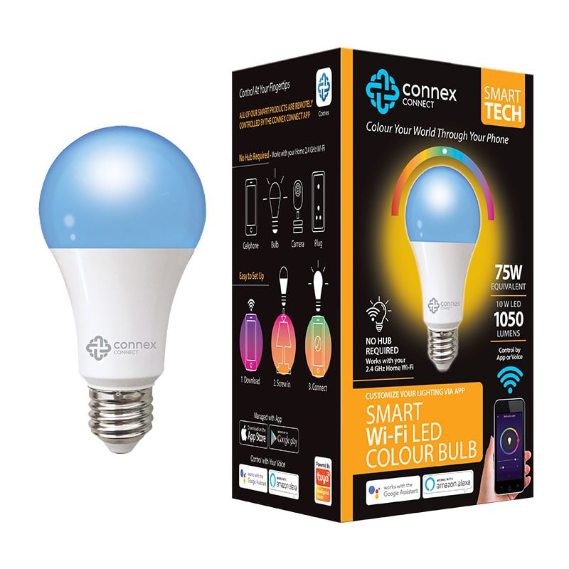 • Smart WiFi 10W LED Bulb with 16 Million colour options, Dimmable Warm White, customisable scenes, 1080 Lumens equivalent to 75W incandescent light.